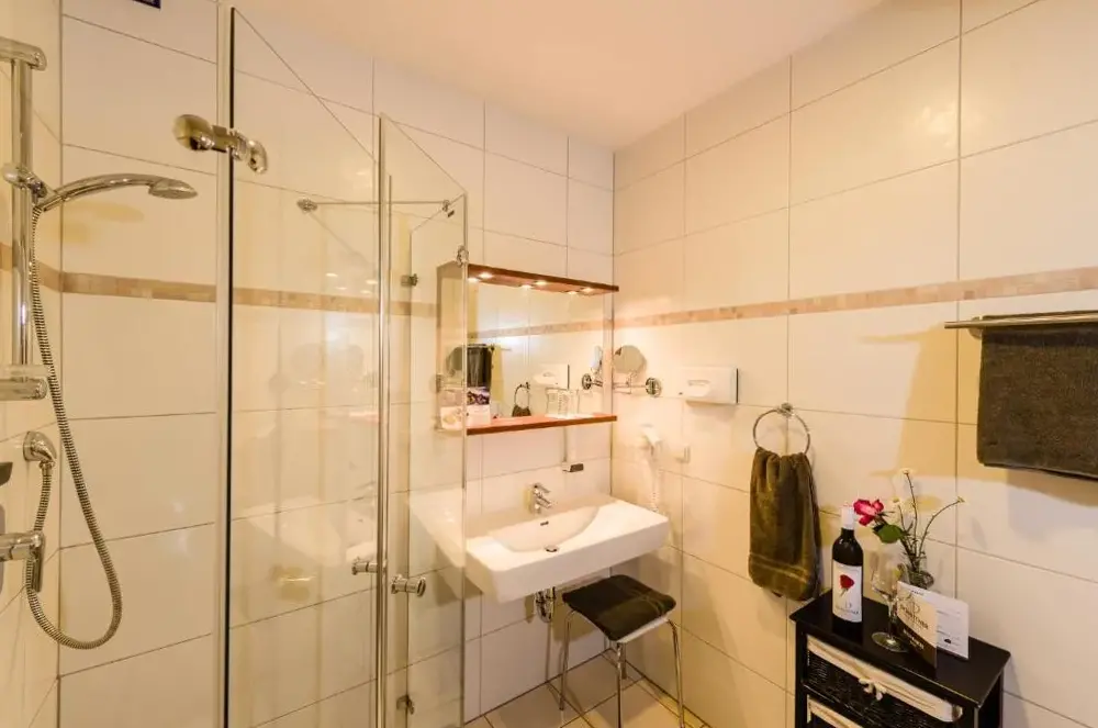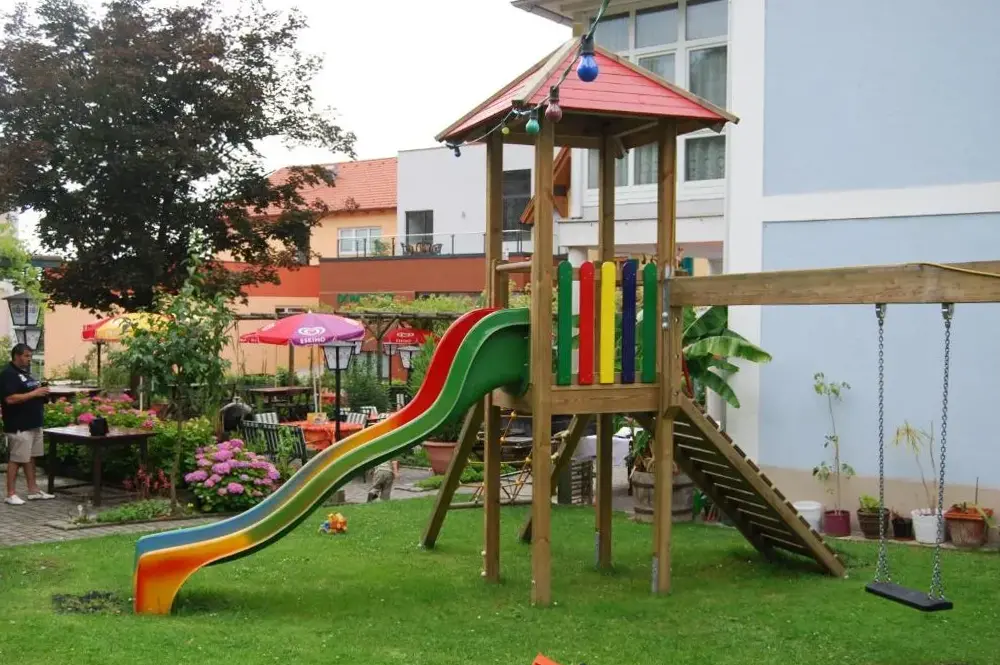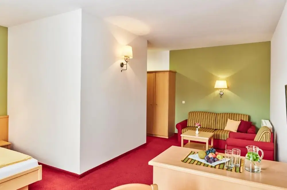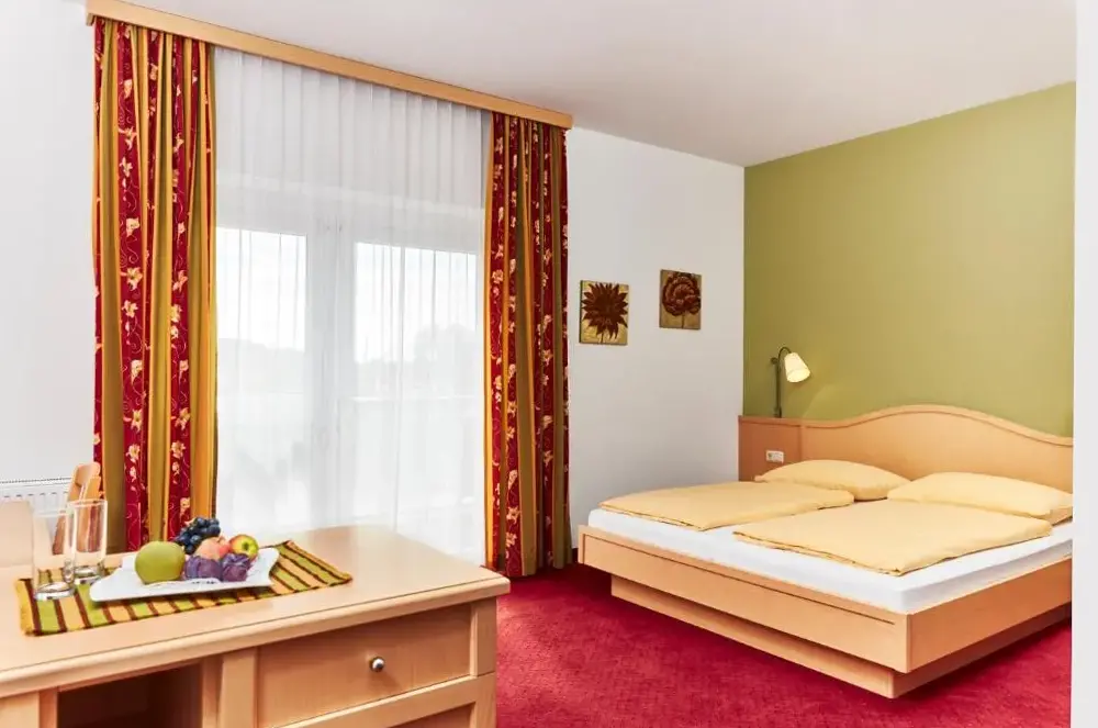 Good location, top breakfast, pleasant pool, but small room without balcony